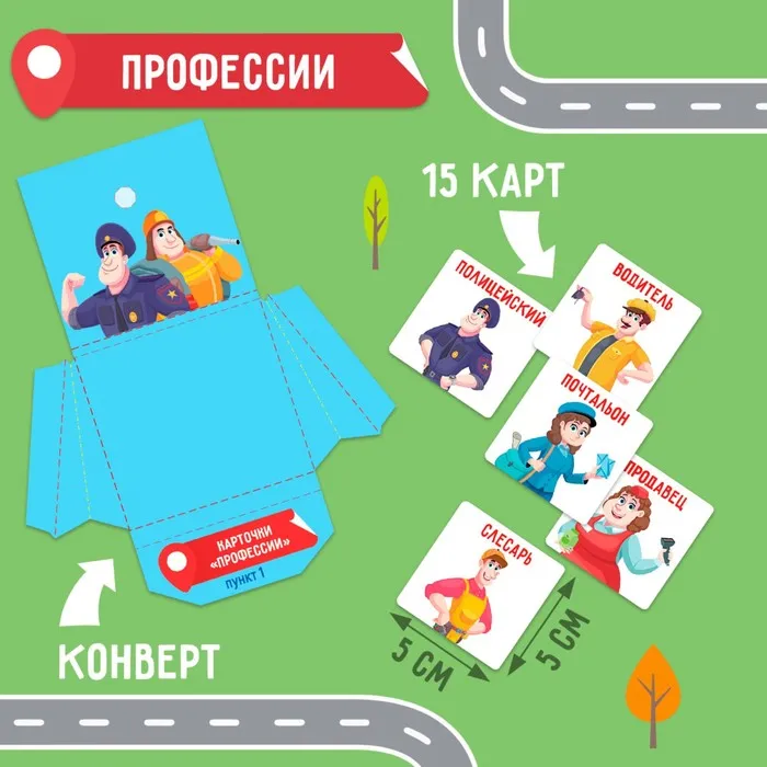 Занятие с изделием учит мыслить креативно, расширяет кругозор, а рассматривание папки в дальнейшем позволяет легко вспомнить пройденные темы. Лэпбук «Карта профессий» включает в себя мини-игры для изучения профессий.