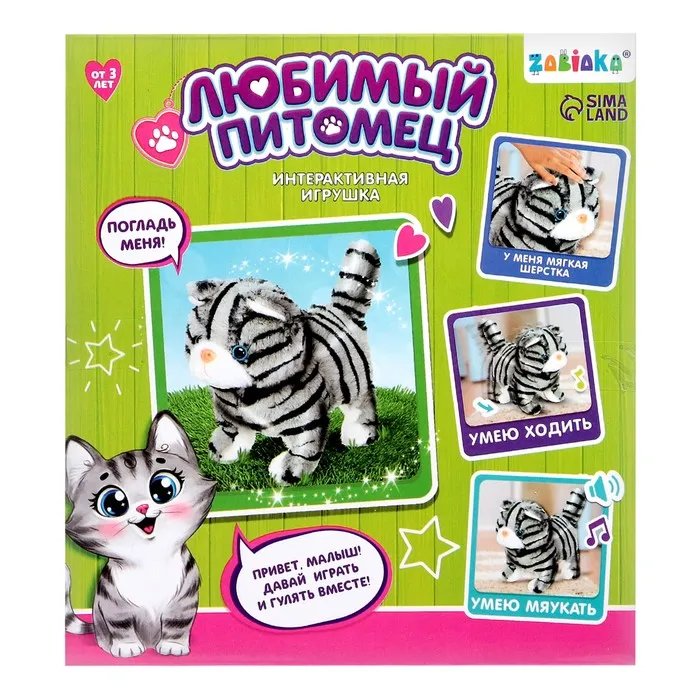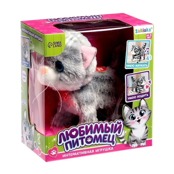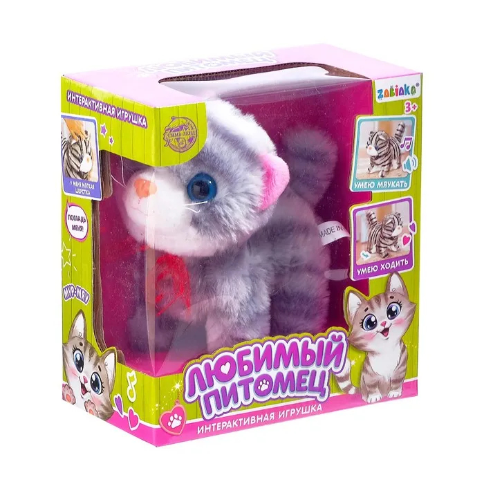 Котёнок имеет мягкую шёрстку, ходит и мяукает. Игрушку можно взять с собой на прогулку, в школу или детский сад, а также весело поиграть дома.