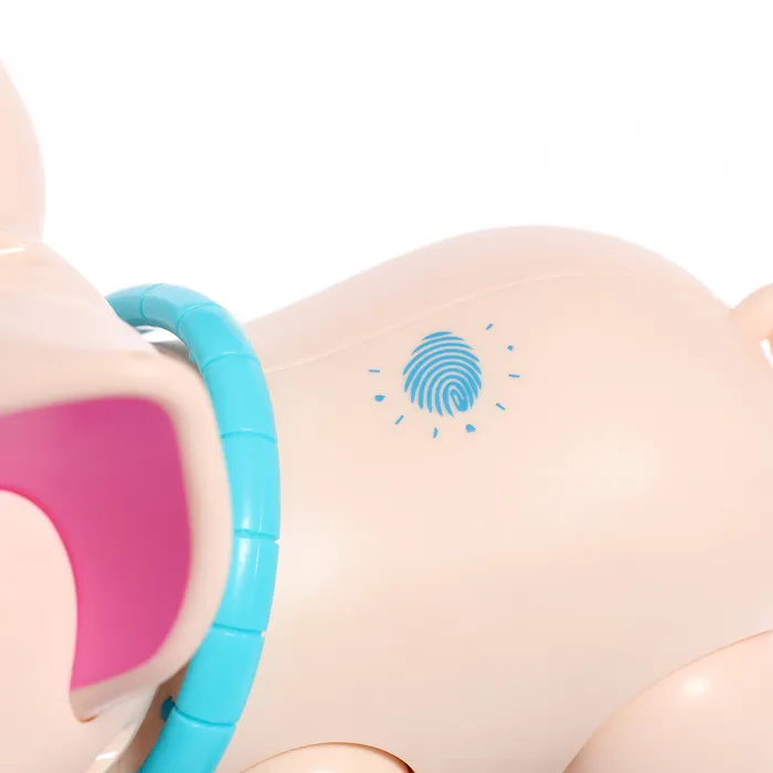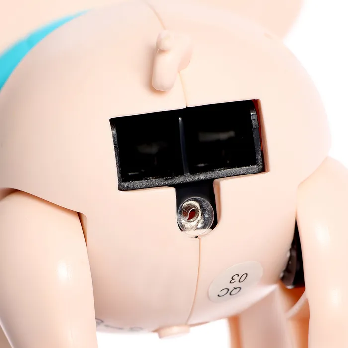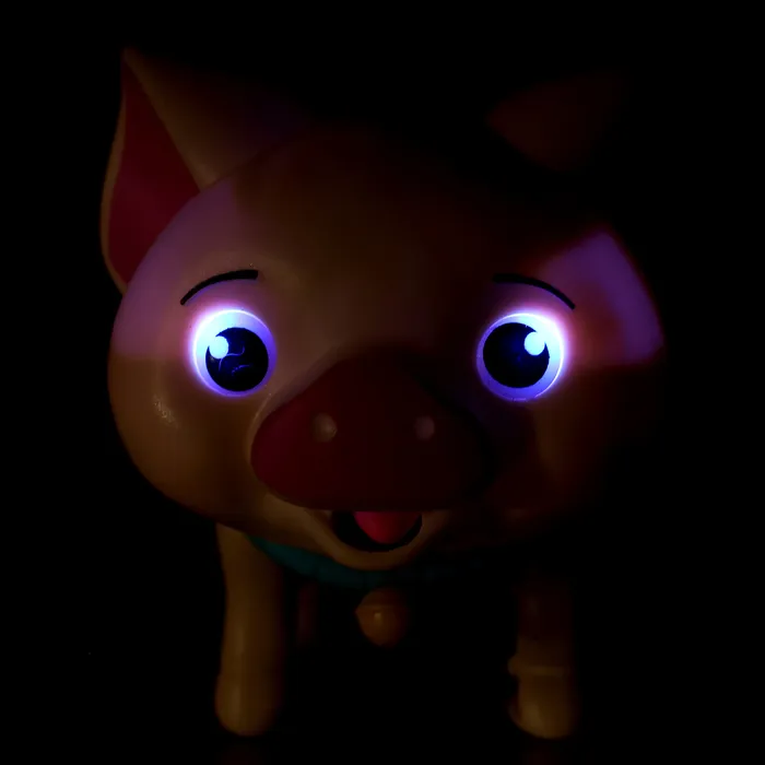 - Если нажать на кнопочку на спинке поросёнка, он начнёт издавать забавные звуки, а его глазки загорятся синим цветом.