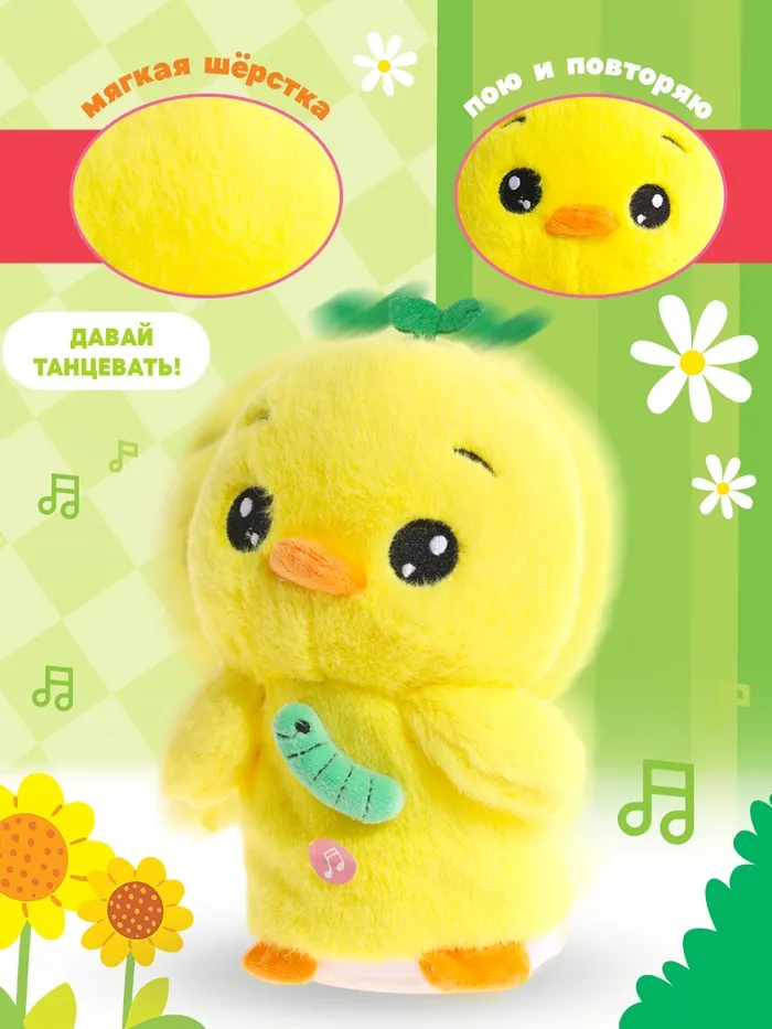 С интерактивной игрушкой досуг станет увлекательным, а ребёнок с радостью будет общаться, петь и танцевать вместе с забавным цыплёнком!