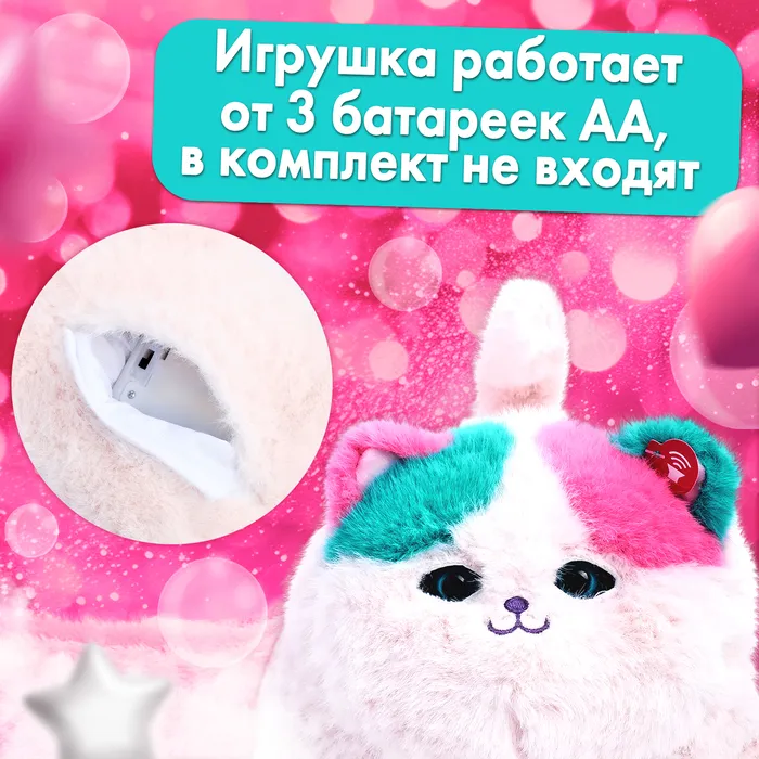 Для работы нужны 3 батарейки АА (в комплект не входят). Подарите ребёнку верного друга — мягкого, весёлого и всегда готового к игре!