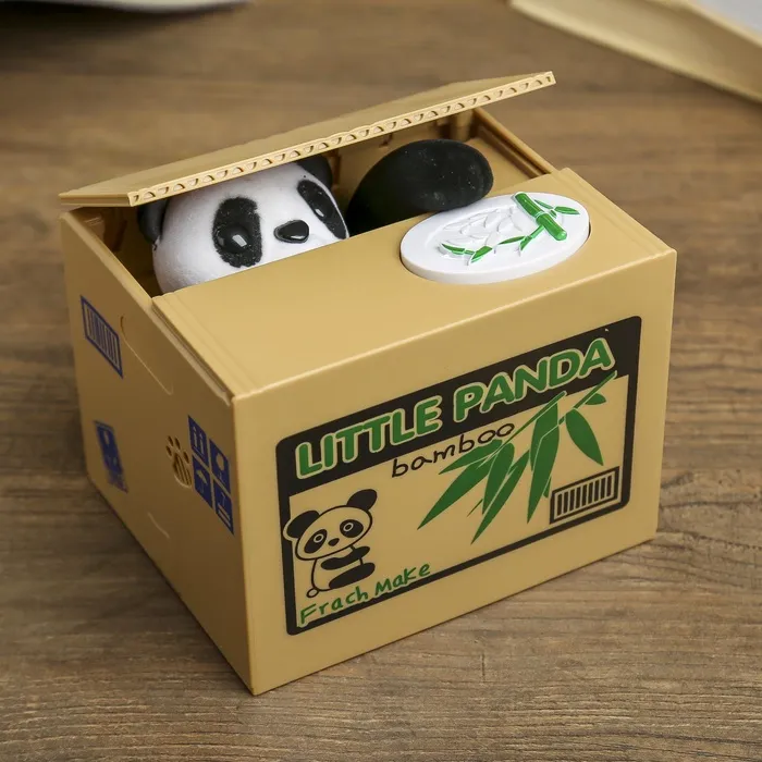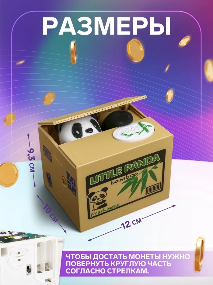 Интерактивная копилка для денег «Панда-воришка берёт монетки», пластик, от 2×АА, звуковая, 9.5×12×10 см — Характеристики