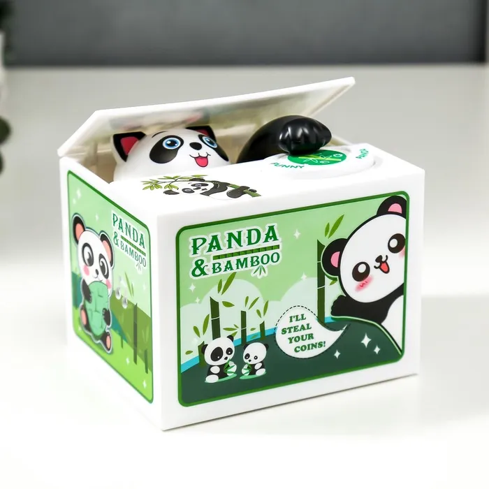 Интерактивная копилка для денег «Панда-воришка прячет монетки», пластик, от 2×АА, 9×12×10 см — Характеристики