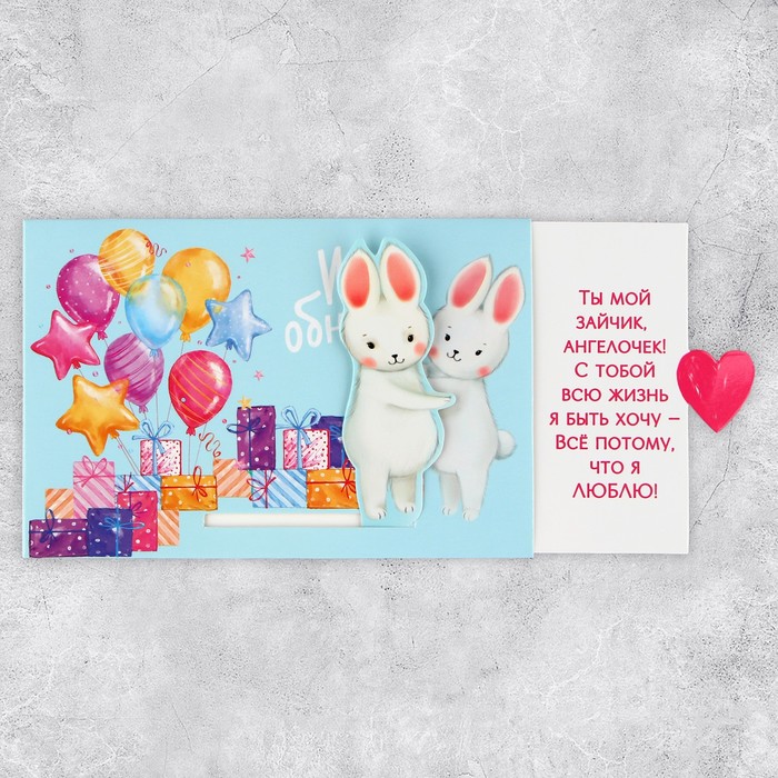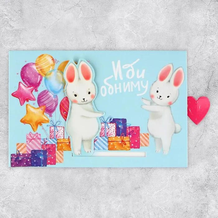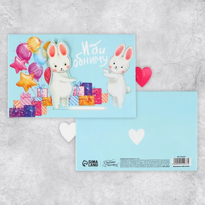 Интерактивная поздравительная открытка «Обнимашки», заяц, 16 х 11 см — Характеристики