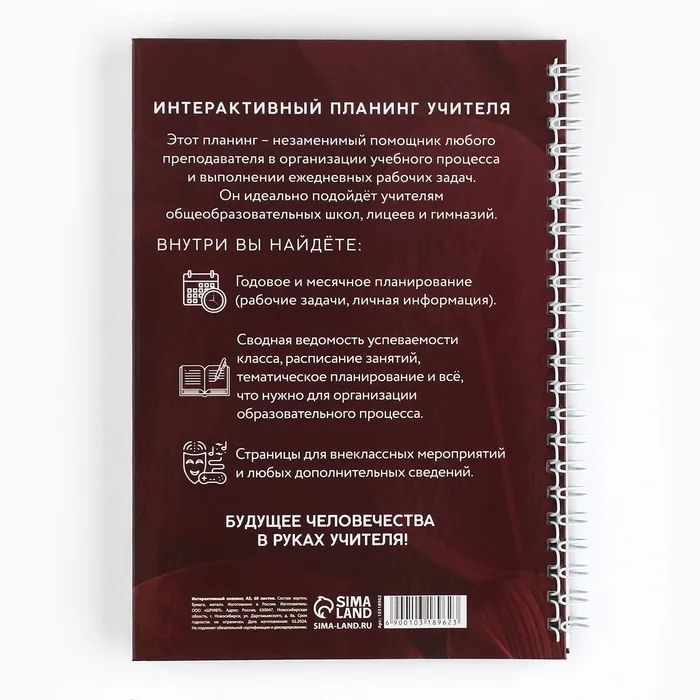 Этот планинг — незаменимый помощник любого преподавателя в организации учебного процесса и выполнении ежедневных рабочих задач. Он идеально подойдёт учителям общеобразовательных школ, лицеев и гимназий.