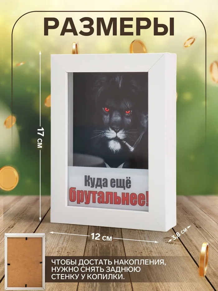 Интерьерная копилка для купюр и монет «Лев. Куда еще брутальнее!», пластик, 17×12×3.8 см — Характеристики