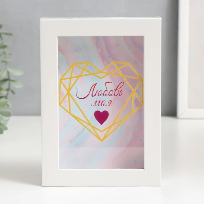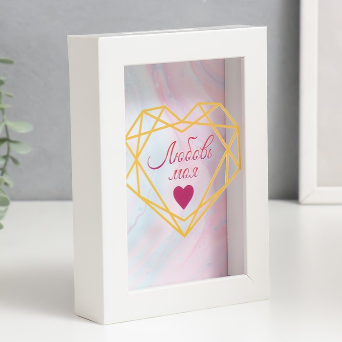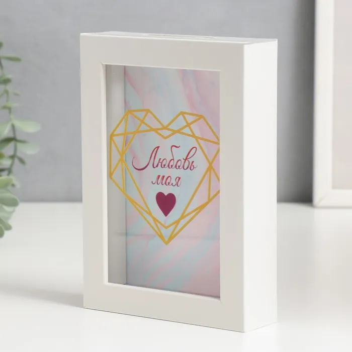 Интерьерная копилка для купюр и монет «Сердце на мраморе», пластик, 17×12×3.8 см