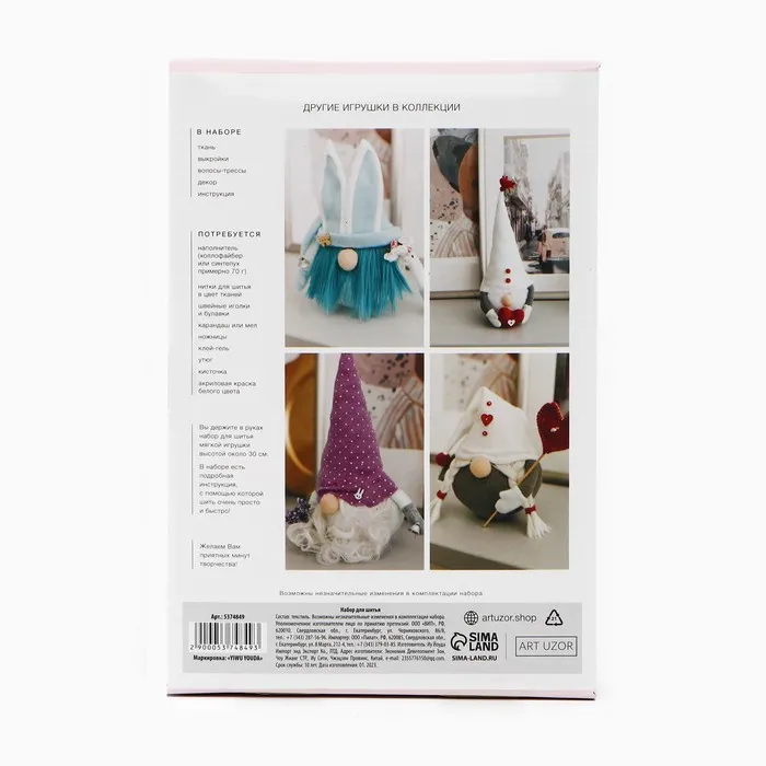 размер готовой игрушки около 30 смготовое изделие станет стильным украшением для вашего доманабор упакован в красивую коробку, он может стать отличным подарком для ребенка и взрослоговы сможете собрать целую коллекцию кукол и игрушек АРТ УзорЧем полезно?