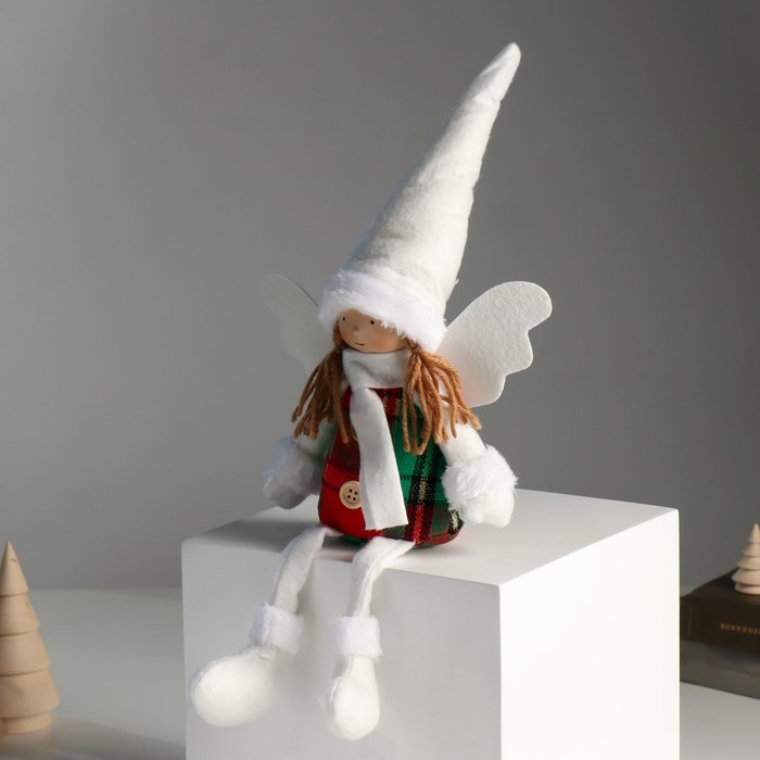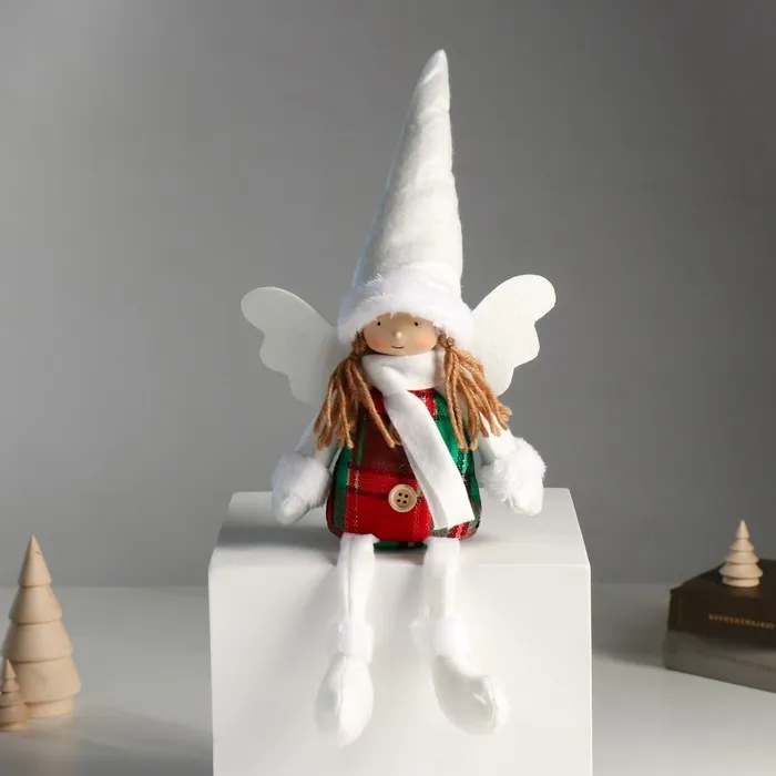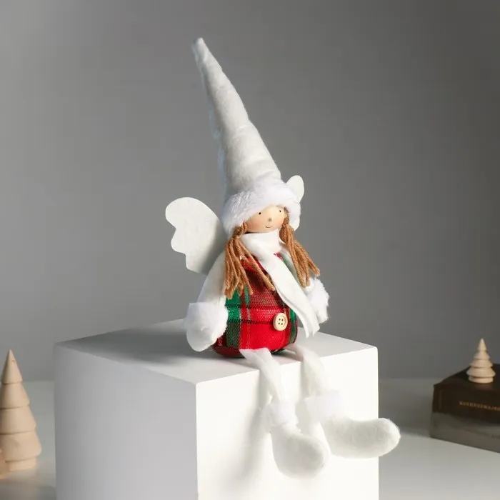 Интерьерная кукла текстильная «Ангелочек в красно-зелёном сарафане», длинные ножки, 16×8×40 см — Характеристики