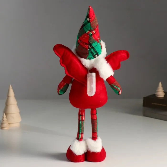 Интерьерная кукла текстильная «Ангелочек в красном наряде, клетчатый колпак», 16×7×40 см — Характеристики