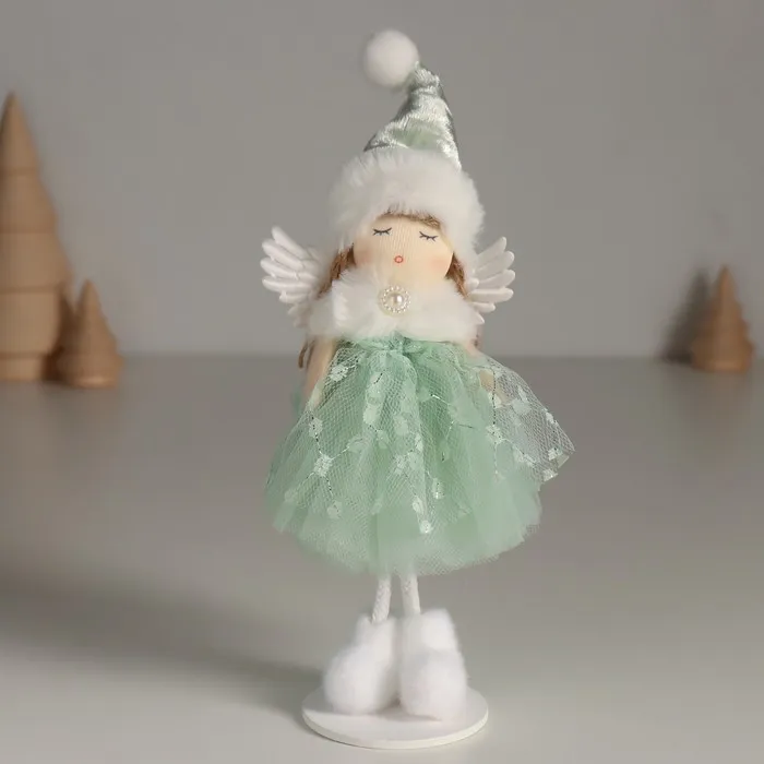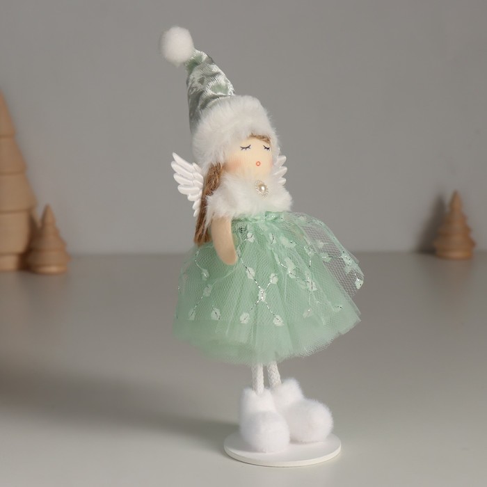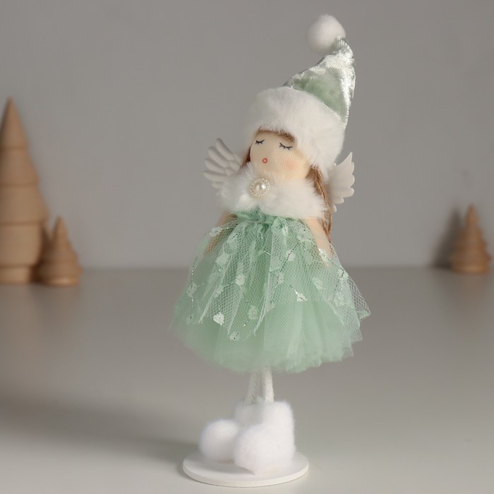 Интерьерная кукла текстильная «Ангелочек в зелёном платье с белым воротником», 5.5×6.5×16 см — Характеристики