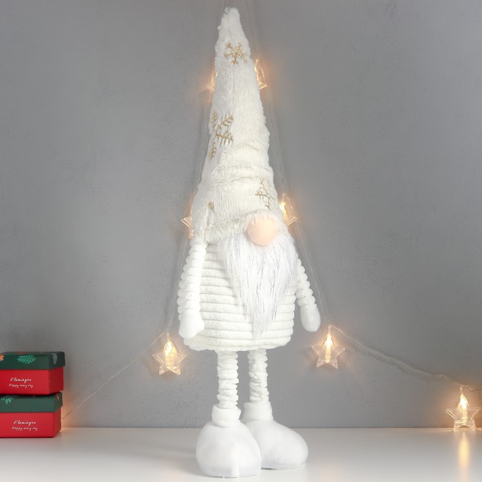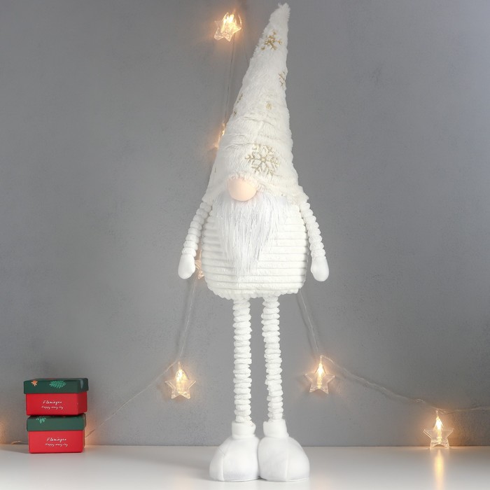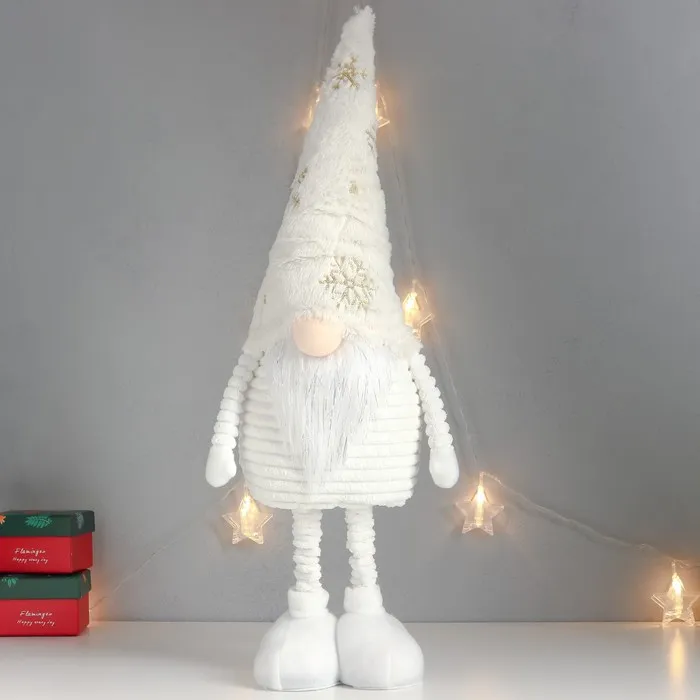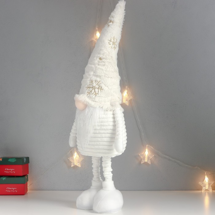 Интерьерная кукла текстильная «Дед Мороз в белом колпаке с золотом», раздвижной, 80×22×14 см — Характеристики