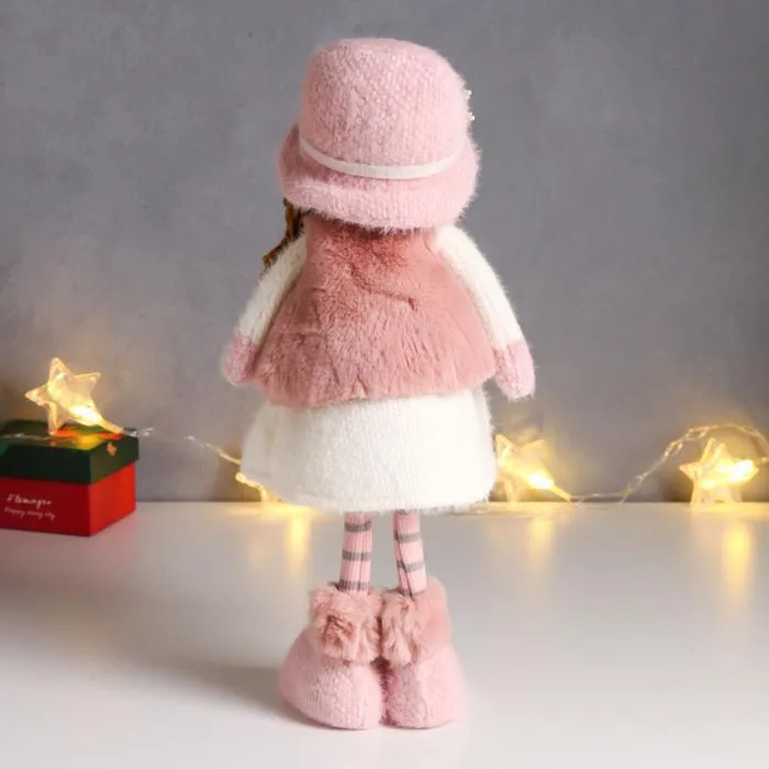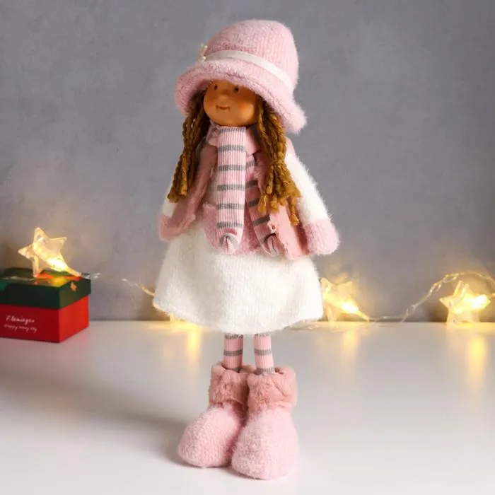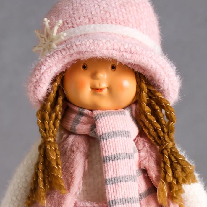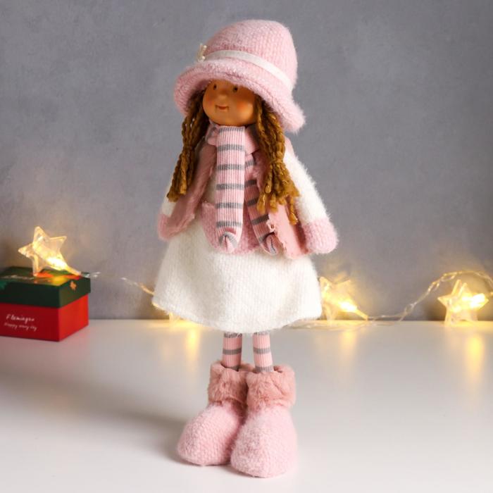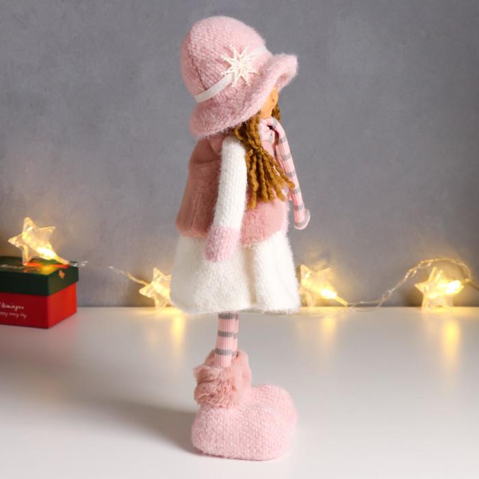 Интерьерная кукла текстильная «Малышка с хвостиками, в вязаном бело-розовом наряде и шляпке», 36.5 см — Характеристики
