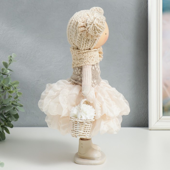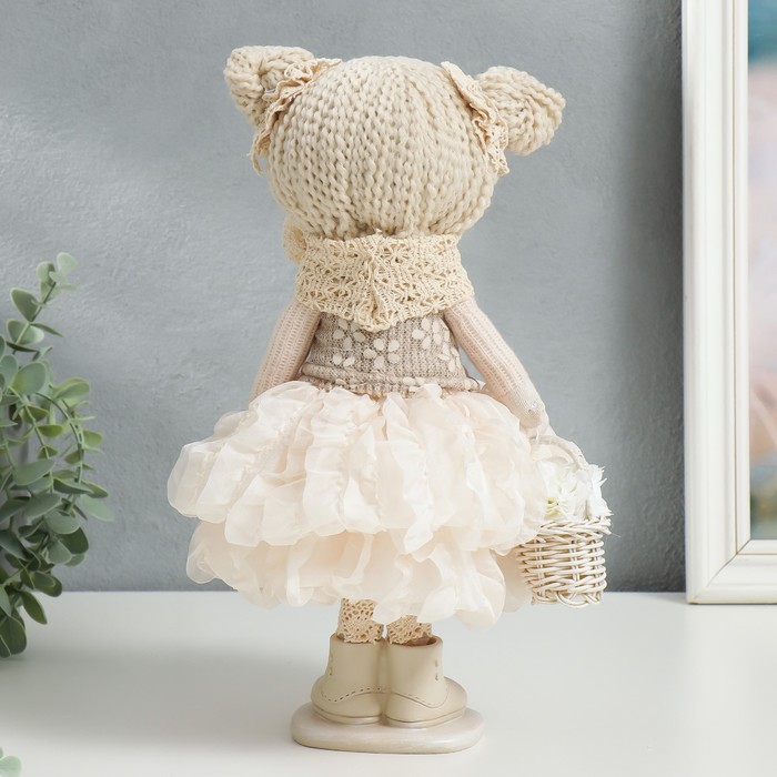 Интерьерная кукла текстильная «Малышка Зося в бежевом наряде, с корзиной цветов», 31×14×16 см