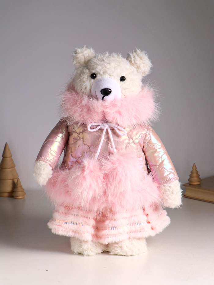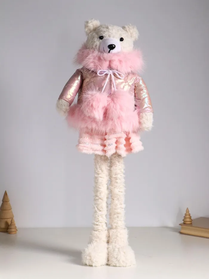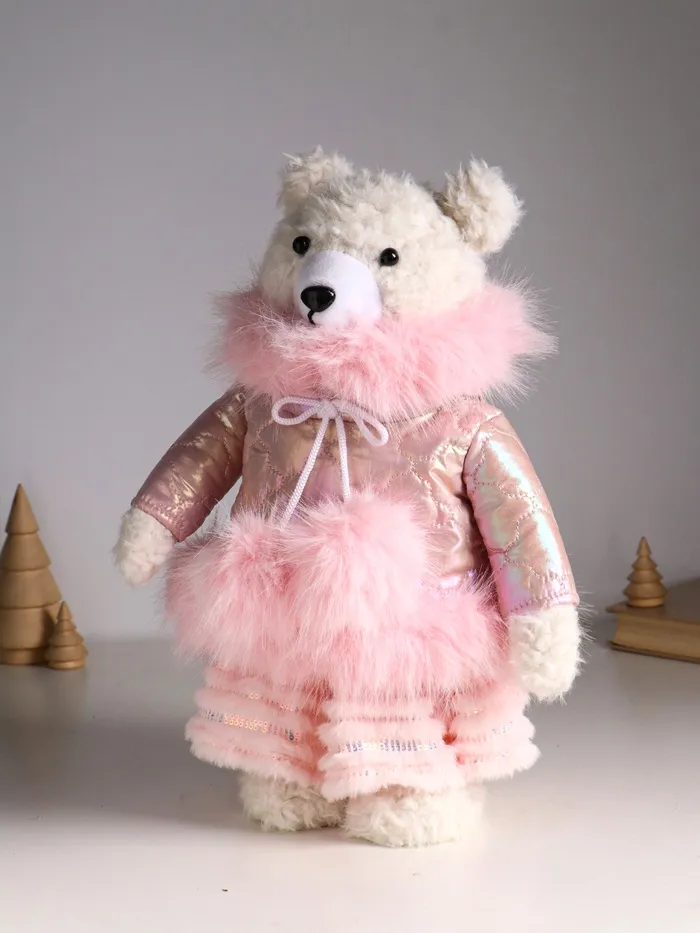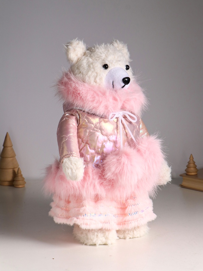 Мягкая подружка для уютных игр и интерьерных решений! Текстильная медведица в розовом пуховике — это очаровательная интерьерная кукла, которая станет любимицей для ребенка и стильным акцентом в любой комнате. Её главный секрет — способность расти.