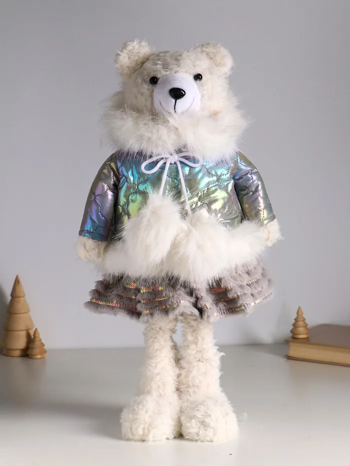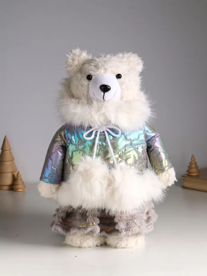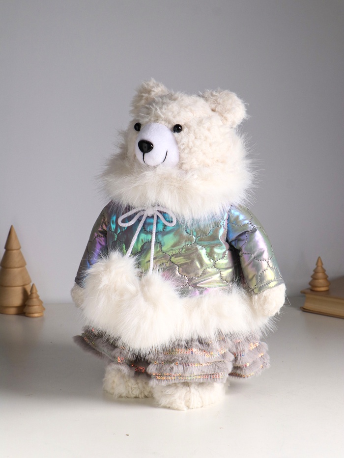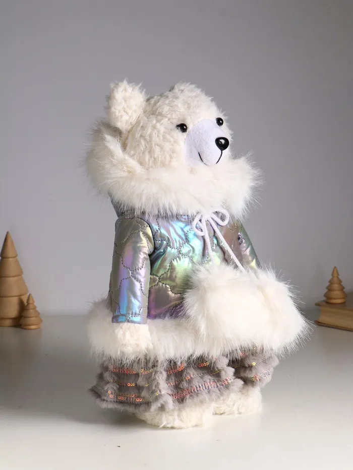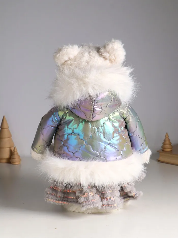 Мягкая игрушка, которая растёт вместе с вашей любовью! Текстильная кукла-медведица в серебристом пуховике — это уникальный трансформер, меняющий размер от компактного до большого. Её уютный образ и гибкая конструкция дарят нежность и открывают простор для искренних игр и тёплого декора.