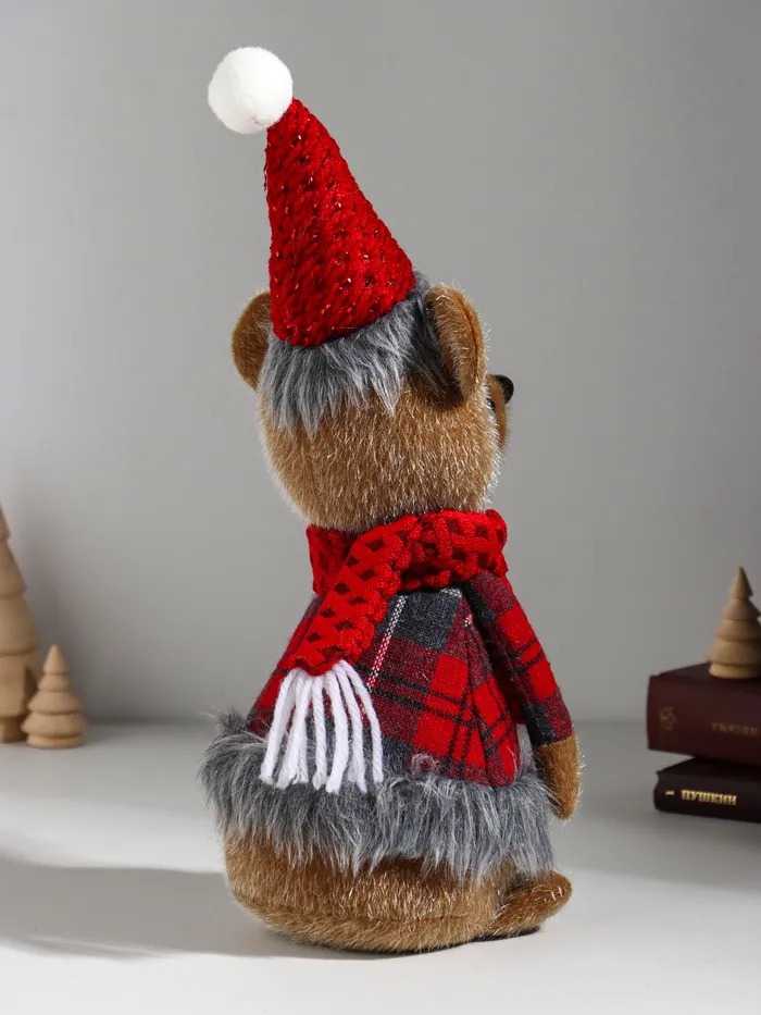 Представляем очаровательного мягкого мишку, который станет настоящим хранителем уюта в вашем доме. Его рост (36 см) и привлекательный внешний вид делают его идеальным акцентом для любого интерьера — будь то полка, комод или диванная подушка. Мишка в колпаке с мехом и шарфе — это не просто декоративная кукла, а источник тепла и позитива, способный создать особую атмосферу комфорта.