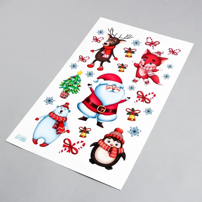 Интерьерная наклейка «Дед мороз и зверята» 30×50 см