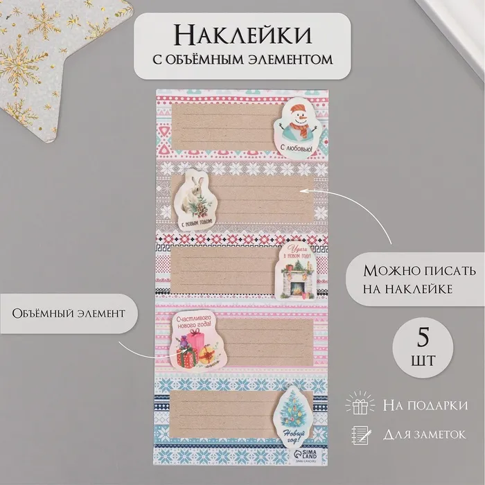 Наклейка с объёмным элементом "Новогодние узоры" 7х15,2 см