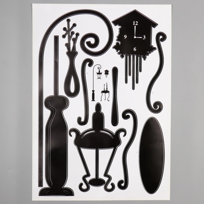 Наклейка интерьерная чёрная «Фонарь, столик и часы», 50×70 см