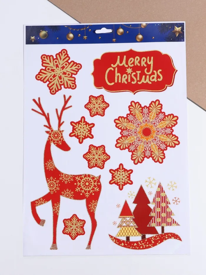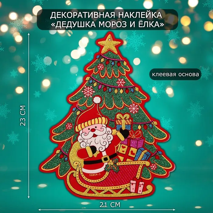 Новогодняя наклейка интерьерная «Дедушка Мороз и ёлка», 23х21 см