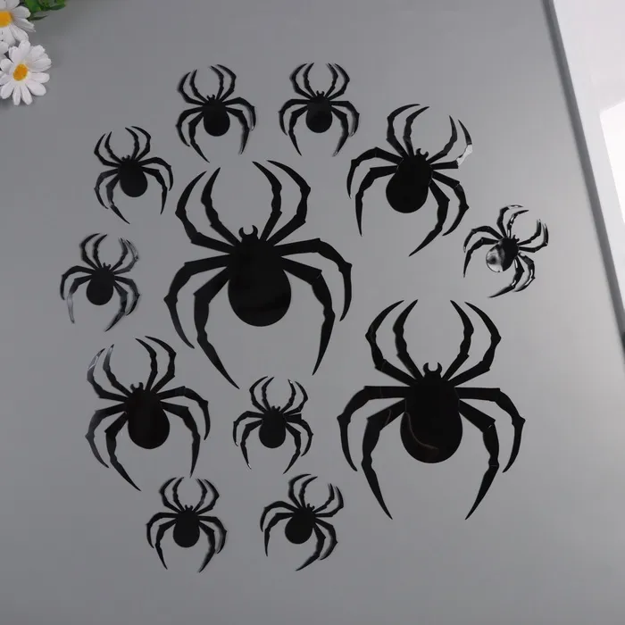 Наклейка пластик "Пауки" набор 12 шт 3 размера