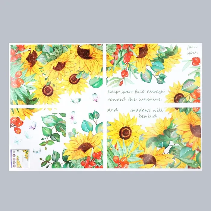 Наклейка пластик интерьерная цветная "Подсолнухи и барабарис" 60х90 см