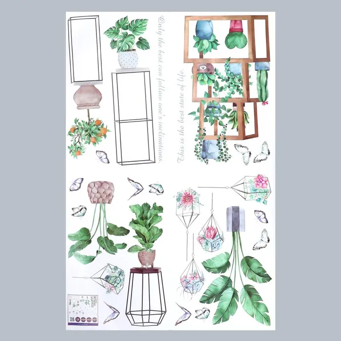 Наклейка пластик интерьерная цветная "Комнатные растения и флорариумы" 60х90 см