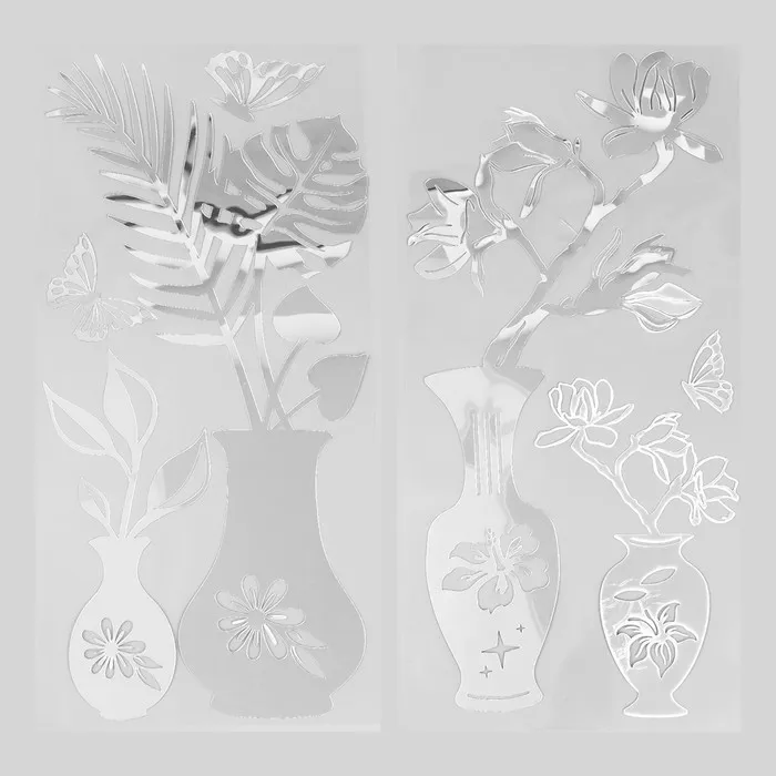 Наклейка интерьерная зеркальная "Вазы с цветами" МИКС 31,5х62 см