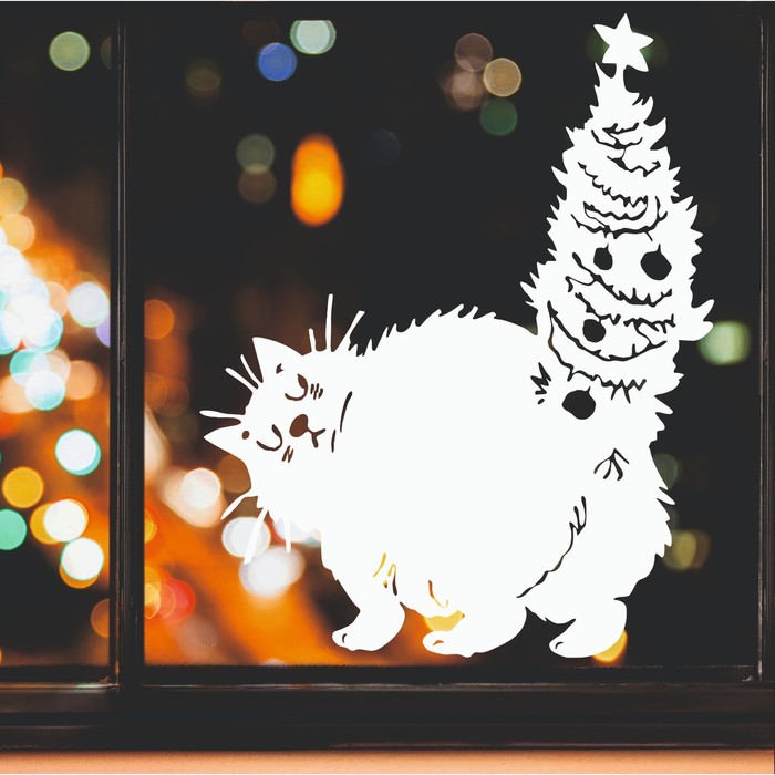 Интерьерная наклейка на окна «Новогодний кот», 40×50 см — Характеристики