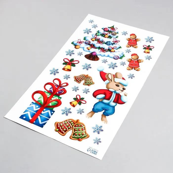 Наклейка выполнена из высококачественного винила, что гарантирует её долговечность и стойкость к внешним воздействиям. Она легко крепится на любую ровную поверхность, не оставляет следов после удаления и при этом сохраняет яркость красок на протяжении всего времени использования. Особое внимание уделено дизайну: мягкие линии, игривый кролик и пушистая ёлка создают гармоничный образ, который подходит как для традиционного новогоднего декора, так и для современных интерьерных решений.