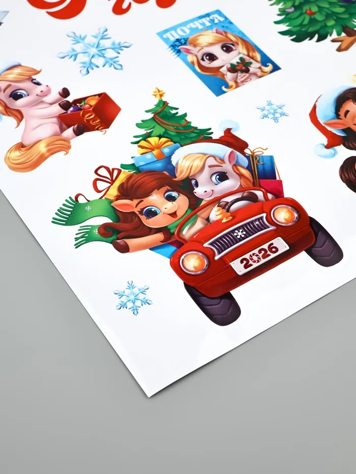 Интерьерная наклейка «С Новым 2026 годом!», лошади, 29.7 х 42 см — Характеристики