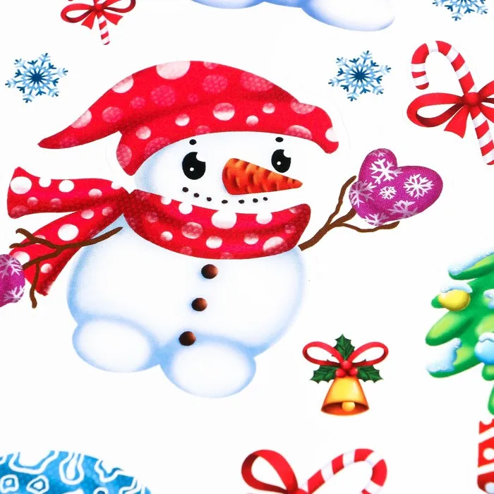 Наклейка интерьерная «Котик, снеговик, ёлка», 30×50 см