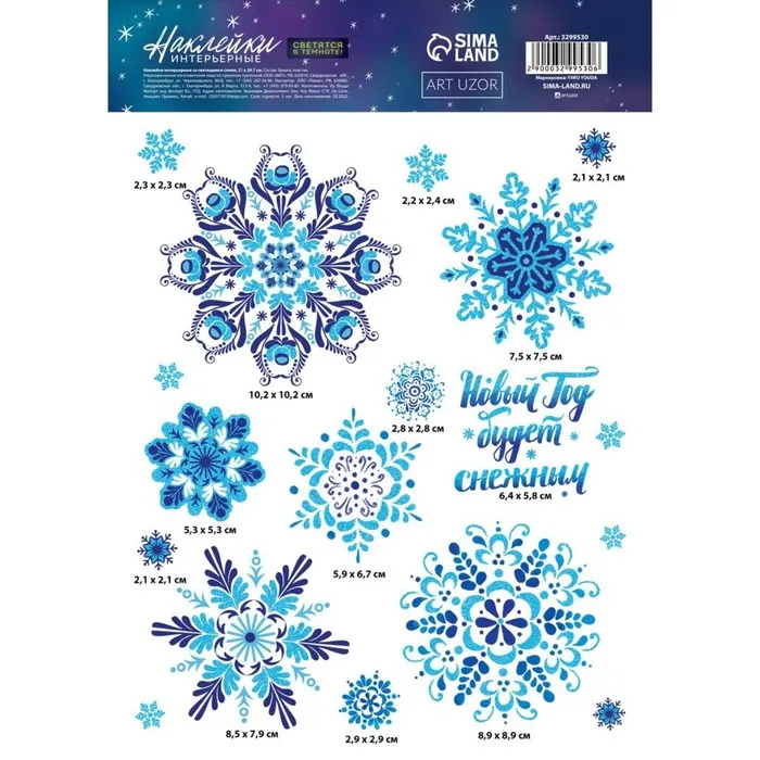 Интерьерная наклейка со светящимся слоем «Новый Год будет снежным», 21 х 29,7 х 0,1 см — Характеристики