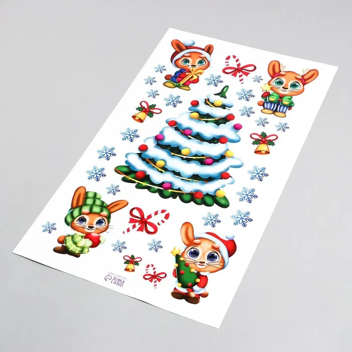 Интерьерная наклейка новогодняя «Кролик и Дедушка Мороз», 30×50 см