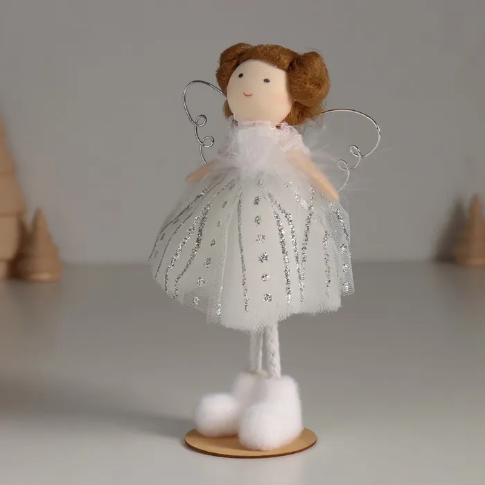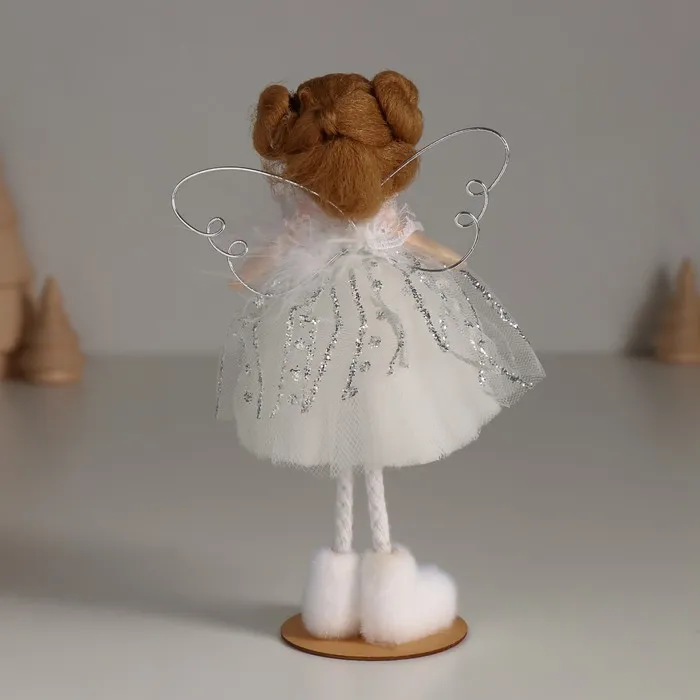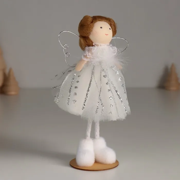 Представляем очаровательную интерьерную куклу, которая наполнит ваш дом атмосферой волшебства и уюта. Этот ангелочек в белом платье и милых белых валеночках станет символом чистоты, доброты и новогоднего настроения. Её размеры — 5×7.8×15.5 см — делают её идеальным акцентом для украшения полок, каминных зон или праздничного стола.