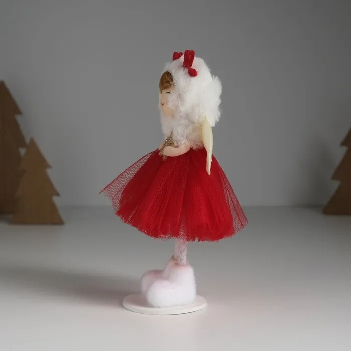 Интерьерная текстильная кукла «Ангелочек в красном платье в шапке с оленьими рожками», 5×5.5×16.5 см — Характеристики