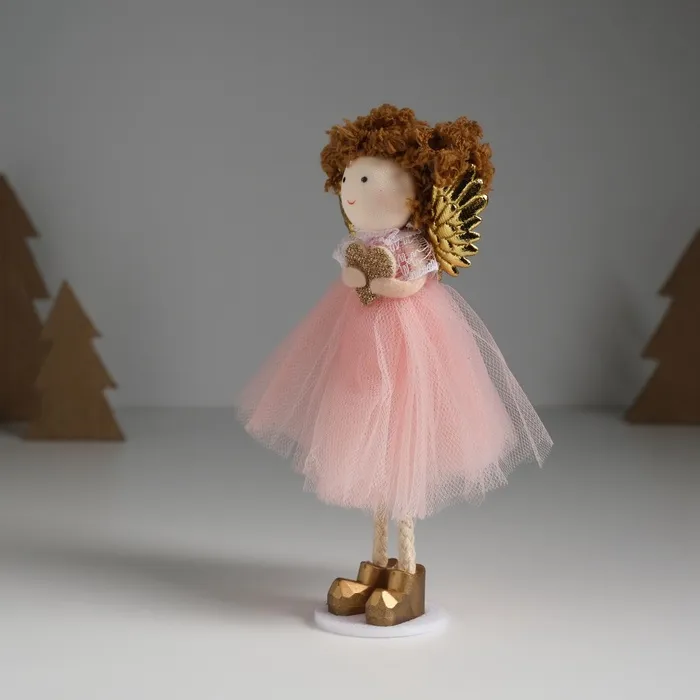 Интерьерная текстильная кукла «Ангелочек в розовом платье с крылышками и сердечком», 4×7×14 см — Характеристики