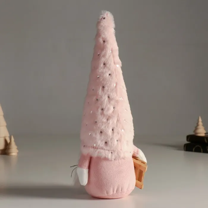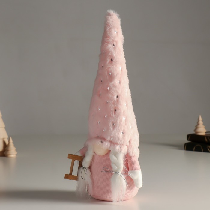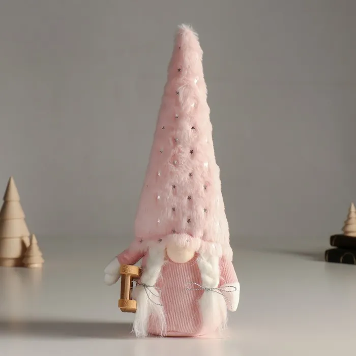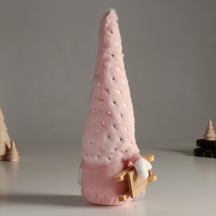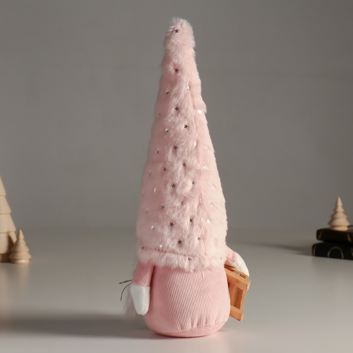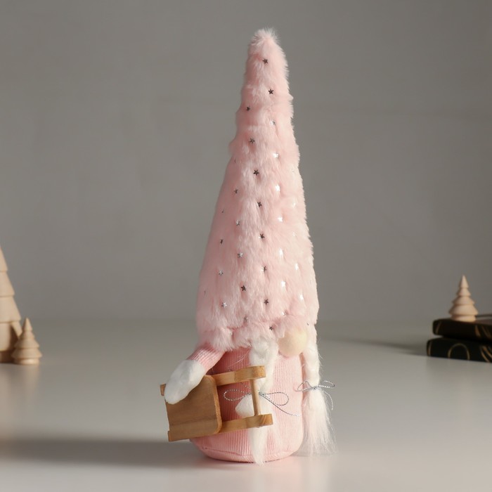 Интерьерная текстильная кукла «Бабуся в меховом розовом колпаке со звёздами и санками», 32 см — Характеристики