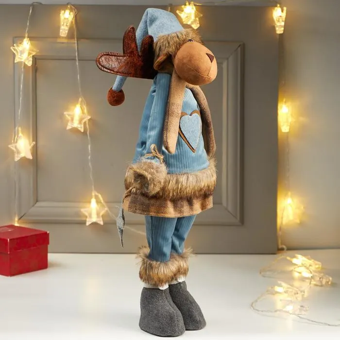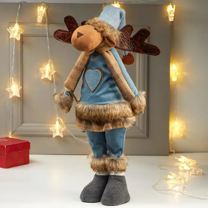 Интерьерная текстильная кукла «Лосик-девочка в голубом свитере с сердцем», 72×20×22 см — Характеристики
