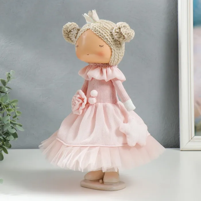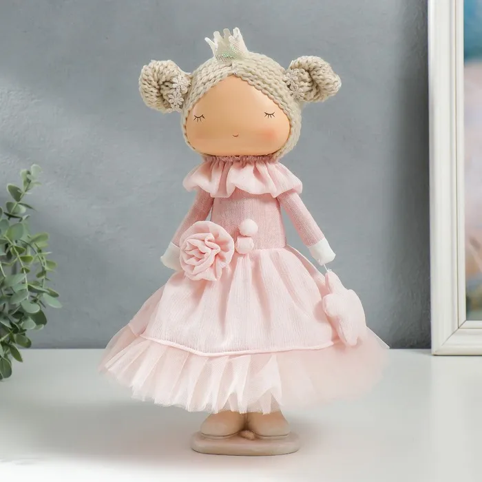 Интерьерная текстильная кукла «Маленькая принцесса в розовом, с цветком», 35х15,5х17 см — Характеристики