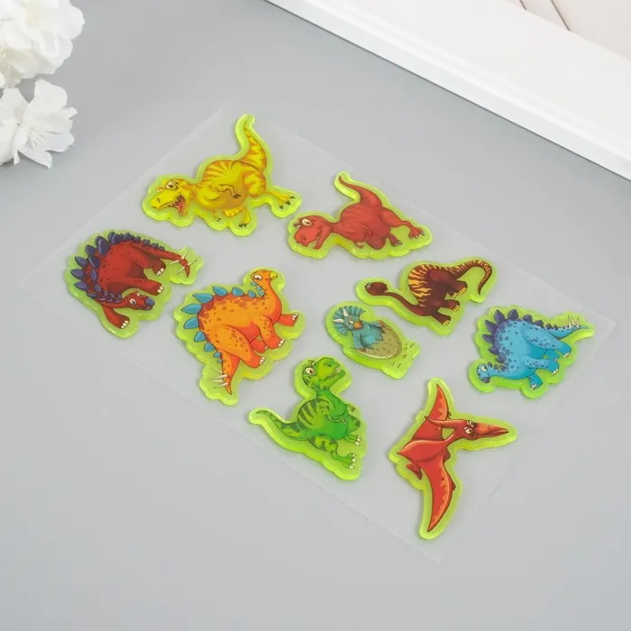 Интерьерные наклейки на стекло, окно «Динозаврики», силикон, фосфорные, 20×16 см — Характеристики