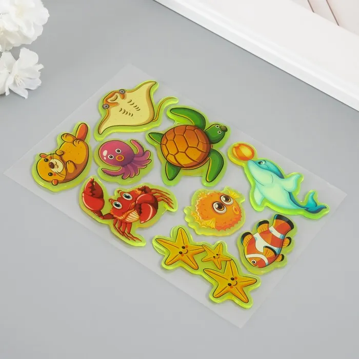Интерьерные наклейки на стекло, окно «Морские друзья», силикон, фосфорные, 20×16 см — Характеристики