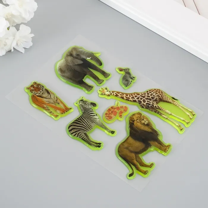 Интерьерные наклейки на стекло, окно «Звери Африки», силикон, фосфорные, 20×16 см — Характеристики