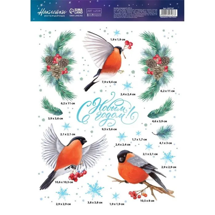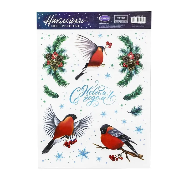 Интерьерные наклейки «Снегири», 21 х 29.7 см — Характеристики