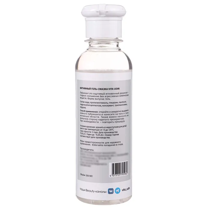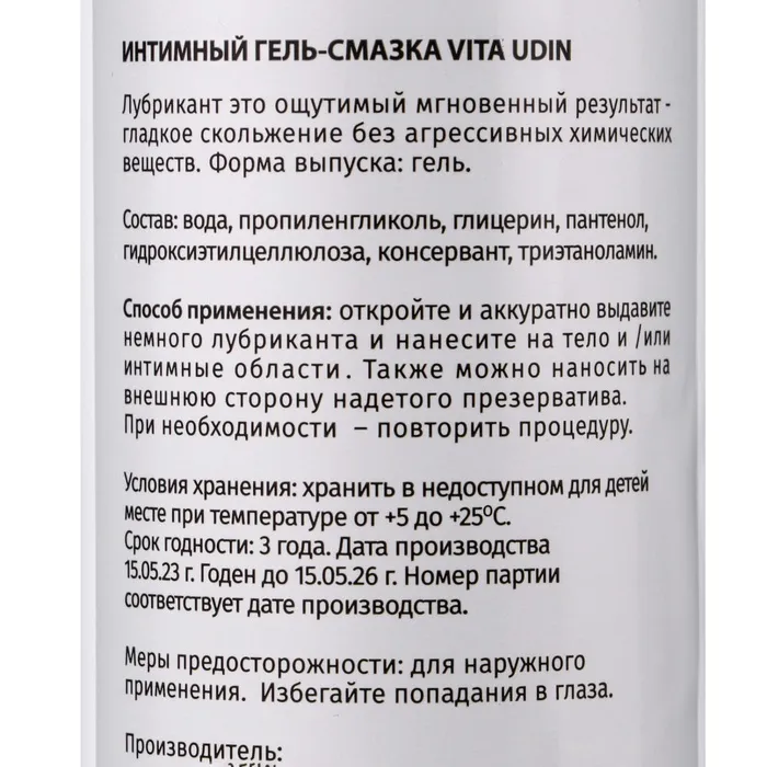 Лубрикант интимный VITA UDIN - это ощутимый мгновенный результат - гладкое скольжение без агрессивных химический веществ.