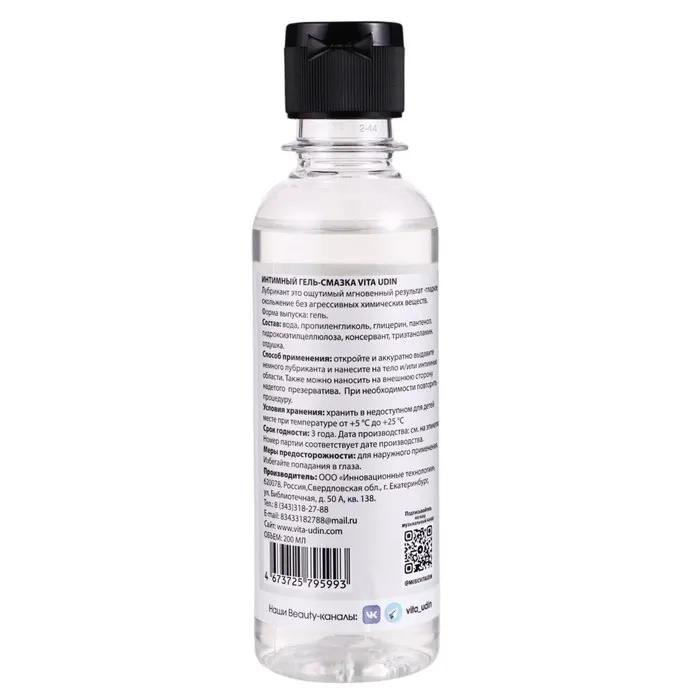 Лубрикант интимный VITA UDIN - это ощутимый мгновенный результат - гладкое скольжение без агрессивных химический веществ.