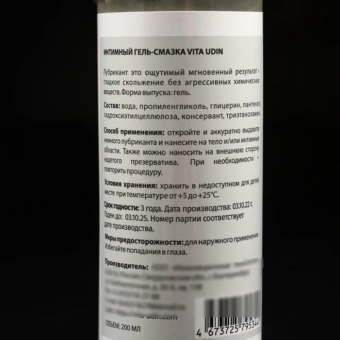 Лубрикант интимный VITA UDIN - это ощутимый мгновенный результат, гладкое скольжение без агрессивных химический веществ.