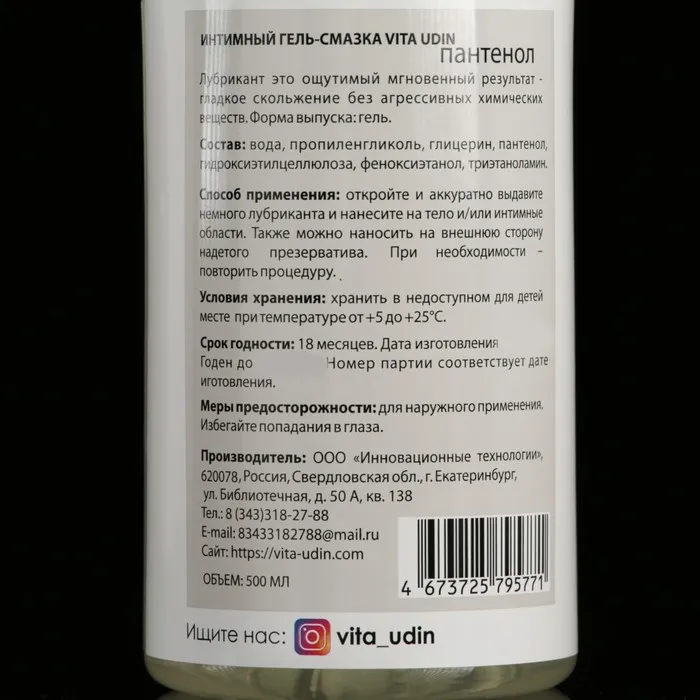 Лубрикант интимный VITA UDIN - это ощутимый мгновенный результат, гладкое скольжение без агрессивных химический веществ.