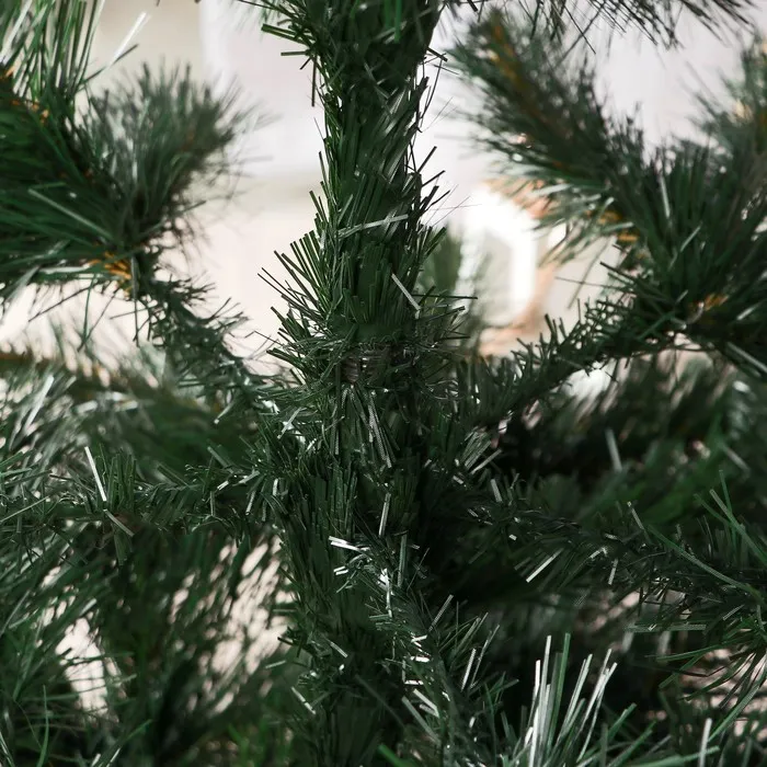 - Зелёный цвет хвои и декора создаёт естественный вид.